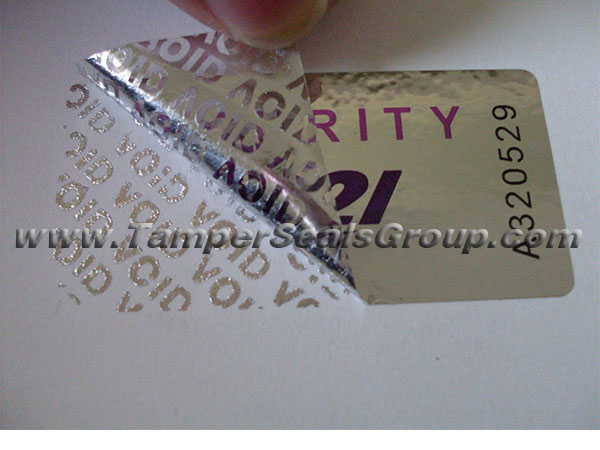 TSG etiquetas de seguridad disponen de un Texto Oculto que evidencia la manipulacion, se engoma estampado y vacío en periférico del estampado. Su principal característica de seguridad es que al despegarlas aparece un mensaje oculto “VOID/OPEN” irreversible, y claramente visible que evidencia cualquier manipulación.