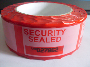 TSG serial numbered tamper seals is an industrial packaging tape used for box sealing specifically where security of tahe carton contents is a concern.
