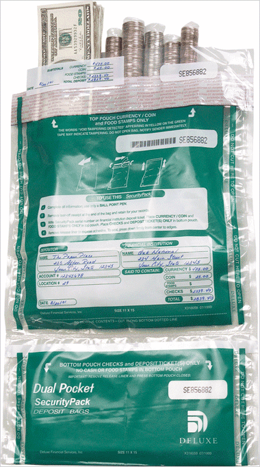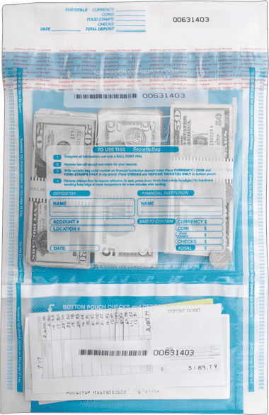 Zusätzliche Sicherheit vor seitlichen Öffnungsversuchen bietet eine Bedruckung der Sicherheitstasche im Bereich der Schweißnähte. Für den Geld- und Werttransport oder den Versand vertraulicher Dokumente. Mit mehrsprachigem Sicherheits klebeband und fortlaufender Nummerierung auf dem Taschenkörper und auf den abtrennbaren Quittungsabschnitten.