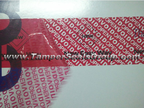 При попытке вскрытия на Индикаторном скотче проявляется надпись "ВСКРЫТО" или "OPENED" которая легко определяется визуально и сохраняется при попытке повторного наклеивания. полный слой с надписью перемещается от скотч на поверхность приклеивания.
